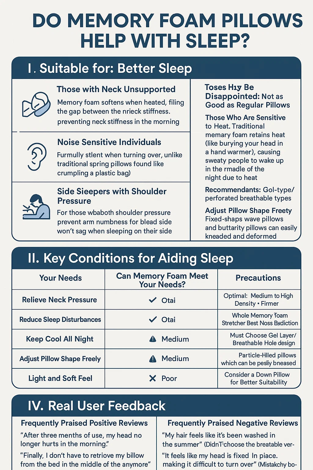 هنا تحليل موضوعي لما إذا كان وسائد رغوة الذاكرة مساعدة في النوم: