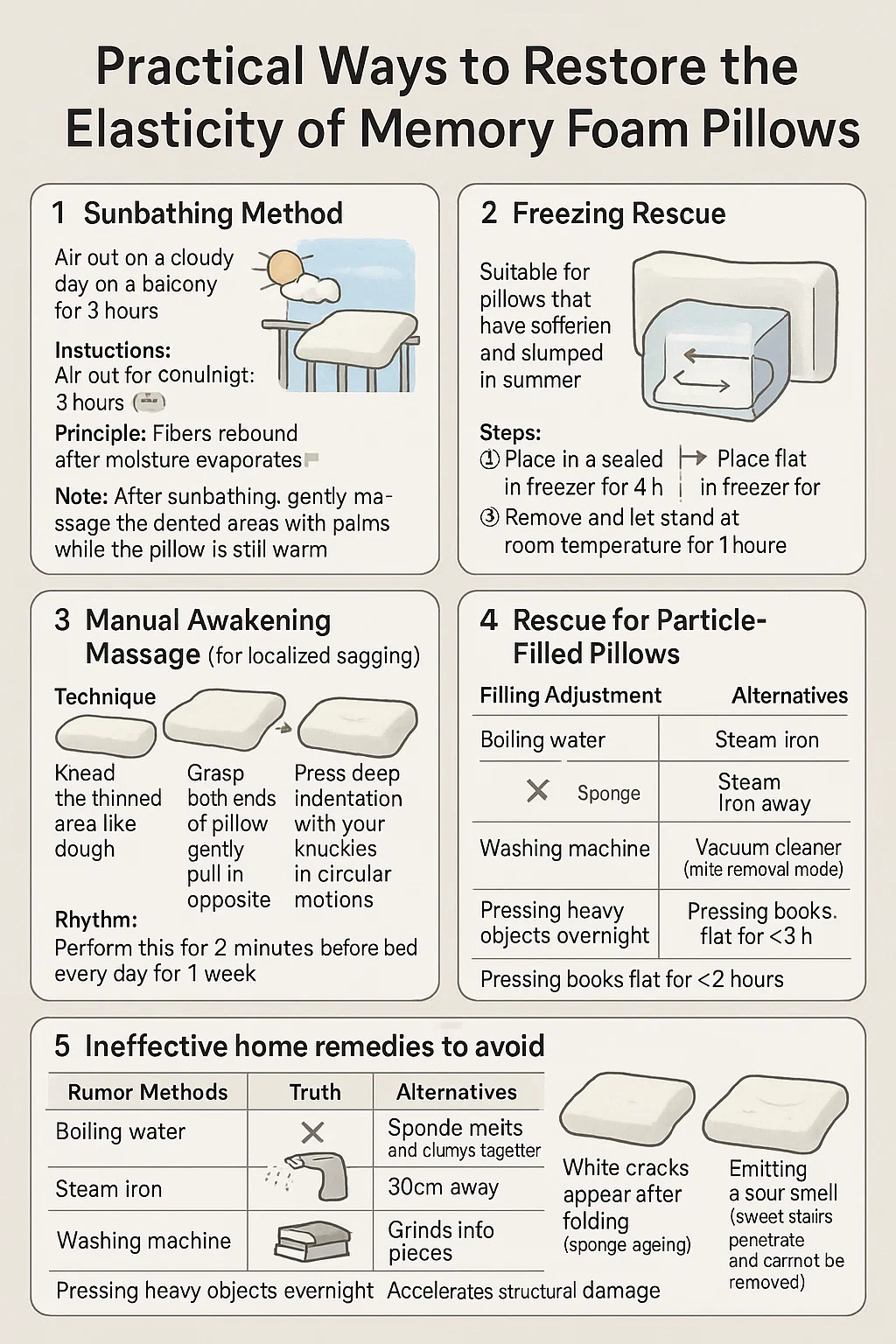 فيما يلي بعض الطرق العملية لاستعادة مرونة وسائد رغوة الذاكرة :