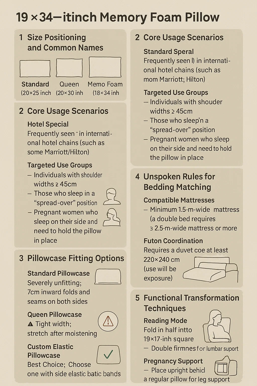 مجموعات الاستخدام المستهدفة: → الأفراد الذين يبلغ عرض أكتافهم ≥ 45 سم → أولئك الذين ينامون في وضع "منتشر" → النساء الحوامل اللاتي ينامن على جانبهن ويحتاجن إلى تثبيت الوسادة في مكانها